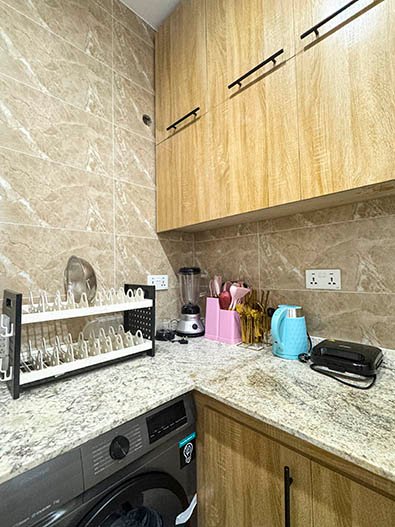 - Amenities: 24/7 Electricity, 24/7 Security, Air conditioning, Balcony, CCTV in Common Areas, Dining area, Flat-screen TV, Free parking, Free WiFi, Fully Fitted Kitchen & Appliances, Gated Environment, Microwave Oven, Netflix, Washing Machine